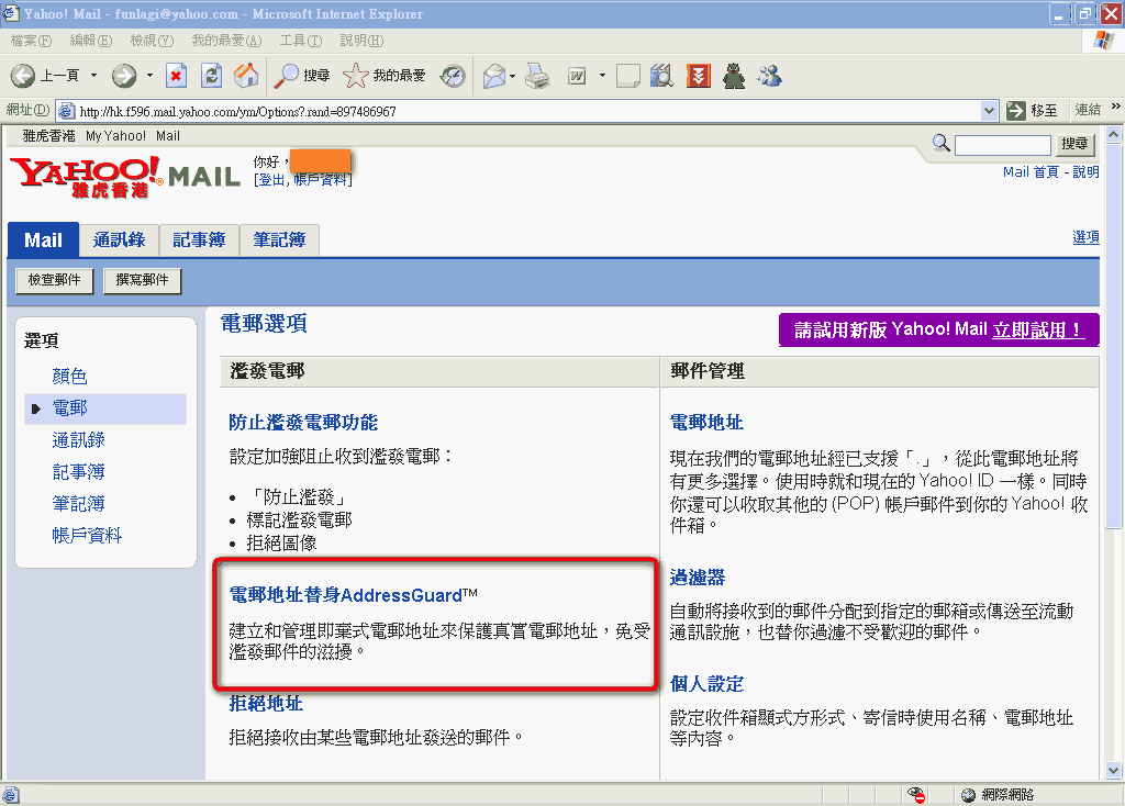 只要將YAHOO的帳號改成香港地區就好了,不用再為了大陸的郵件切換了