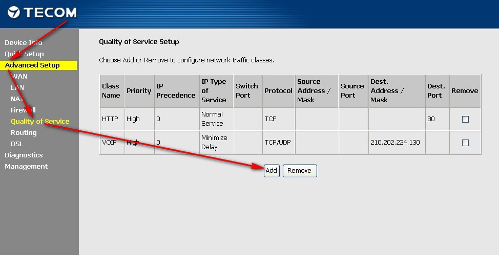 有人留言問到 TECOM AR4031B QoS怎麼設定的,請看圖