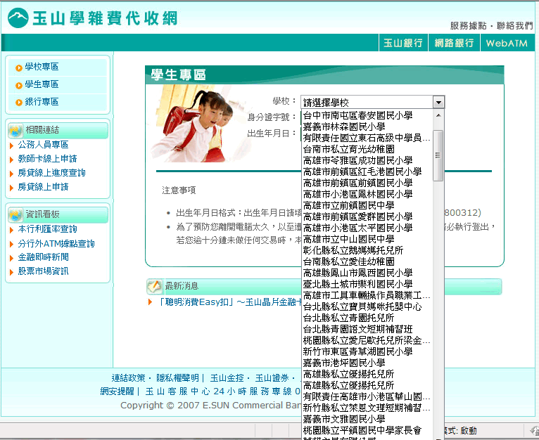 今天要繳大女兒的學費時.....拷.什麼時候奱成玉山銀行代收了...